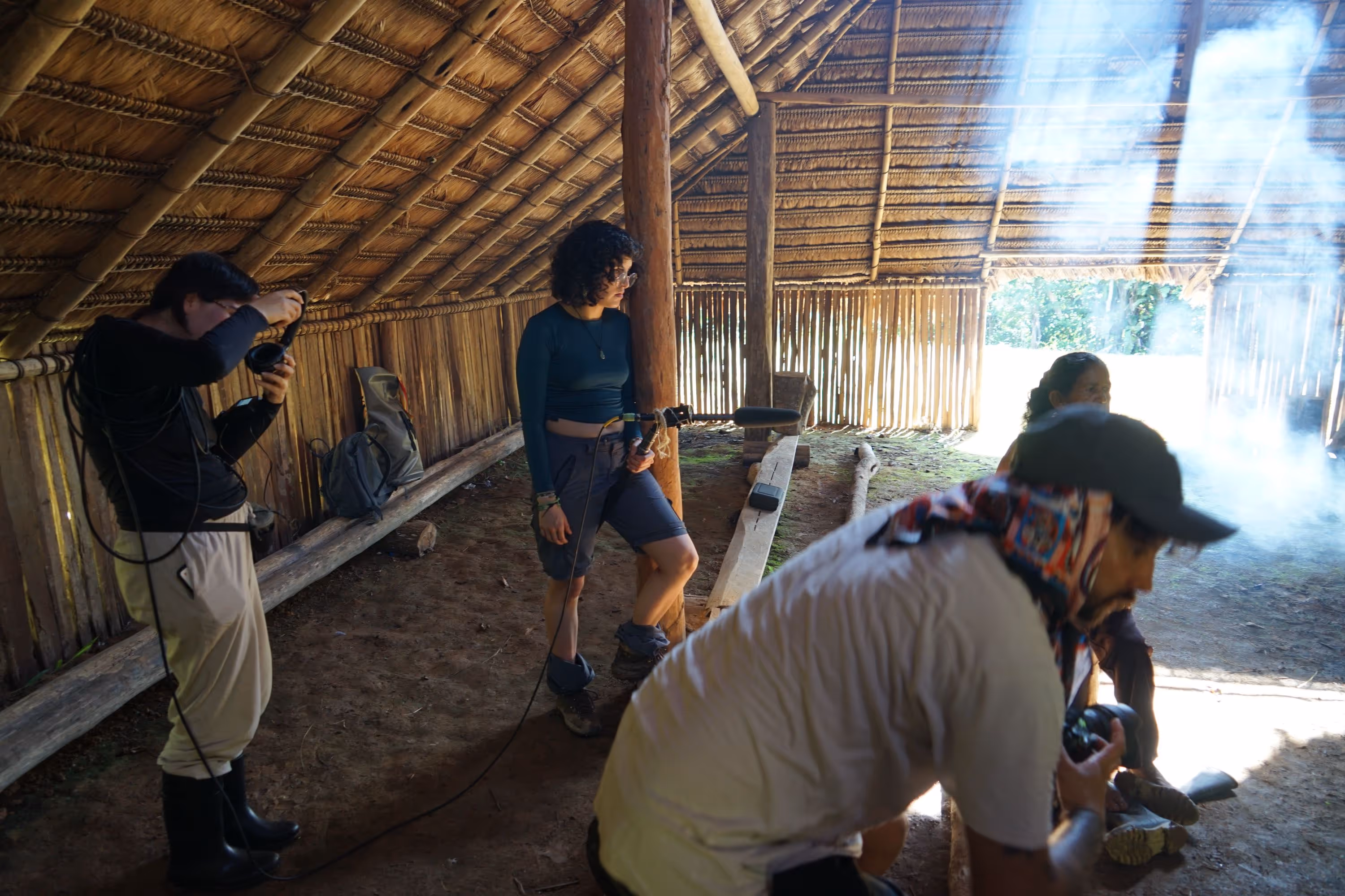 En 2025, por invitación del geógrafo magüta Jhon Sebastián Parente Aránbula, el semillero inició un proceso de acompañamiento al fortalecimiento cultural de la Comunidad Indígena Castañal de Los Lagos, del pueblo magüta, ubicada en los kilómetros 2.5 y 23 vía Leticia-Tarapacá. Durante este año se trabajó de manera articulada con el semillero Tramas —antes llamado Tramas Textiles—, dirigido por la profesora del Departamento de Diseño, Eliana Sánchez-Aldana.