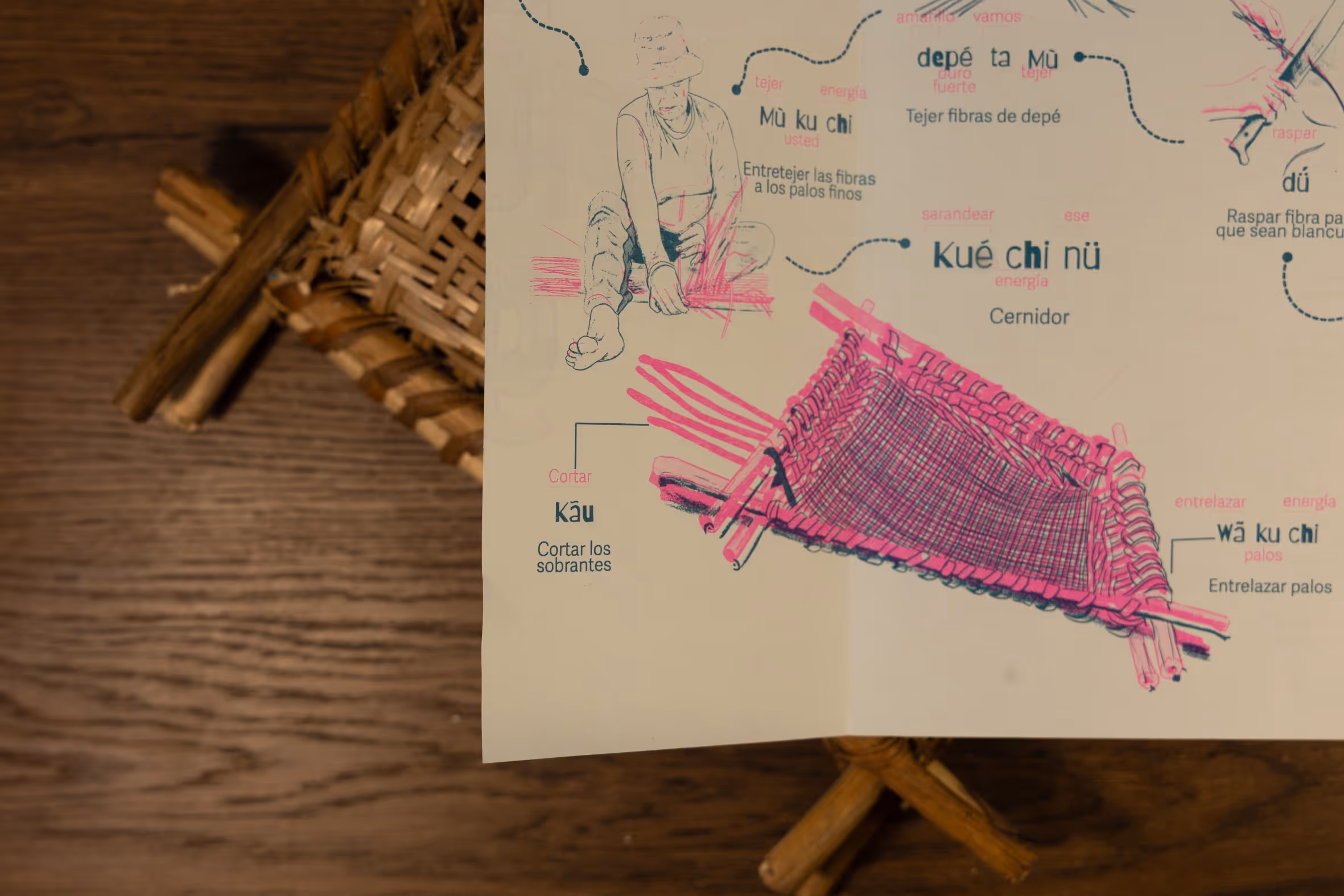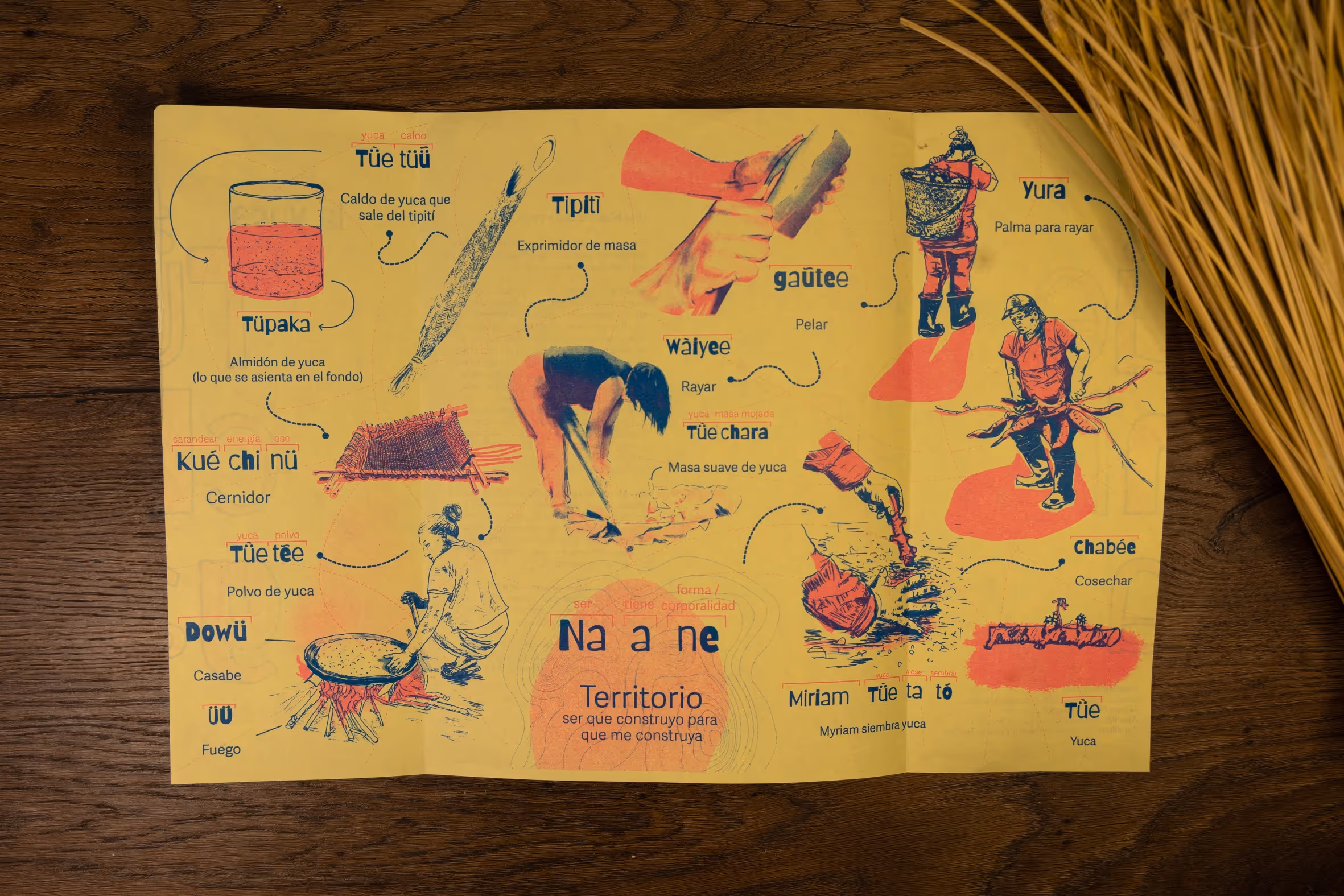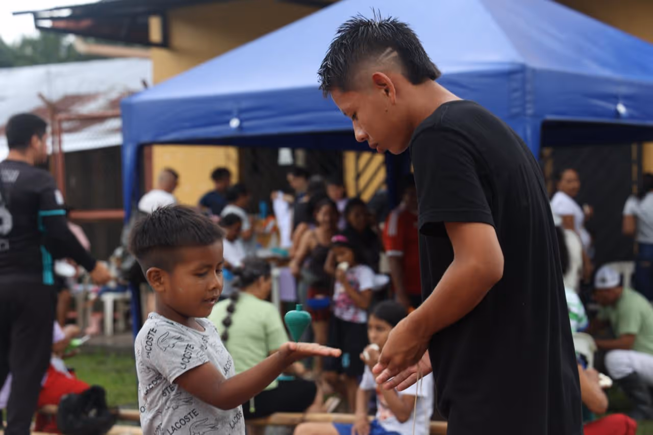 Desde la primera entrada a territorio se empieza a tejer una alianza con el profesor Abel Santos Angarita, de la Universidad Nacional de Colombia, Sede Amazonía quien nos asesora en la publicación de la serie de impresos Magütágüchiga que se centran en el tejido y el territorio para fortalecer la lengua y la cultura en la comunidad. En diciembre del 2025, organizamos un encuentro para hacer entrega del impreso y organizar una serie de eventos de cierre del año. Este encuentro se centró en el tejido y el territorio para fortalecer la lengua y la cultura en la comunidad magüta en Castañal Los lagos (km 2.5 vía Leticia Tarapacá) y en la sede Banco de la República en Leticia.