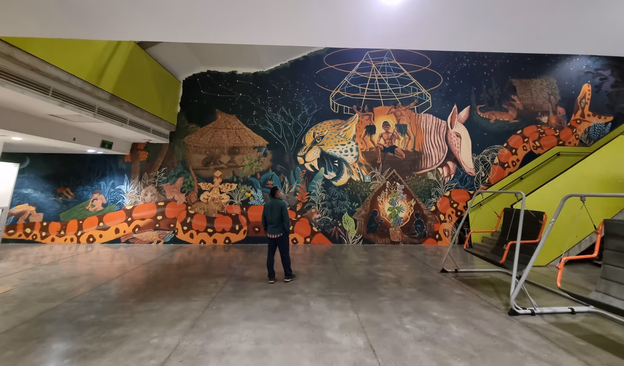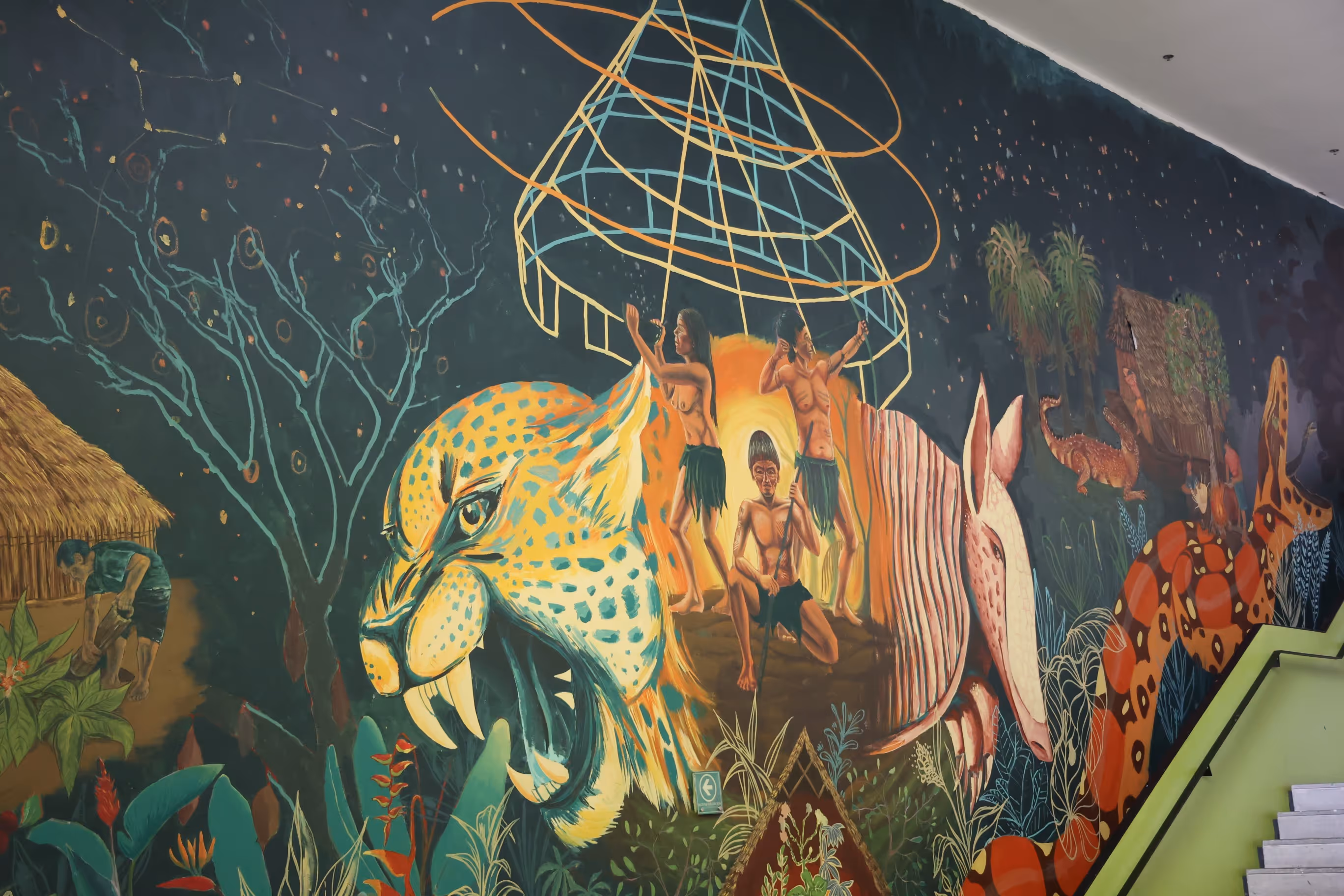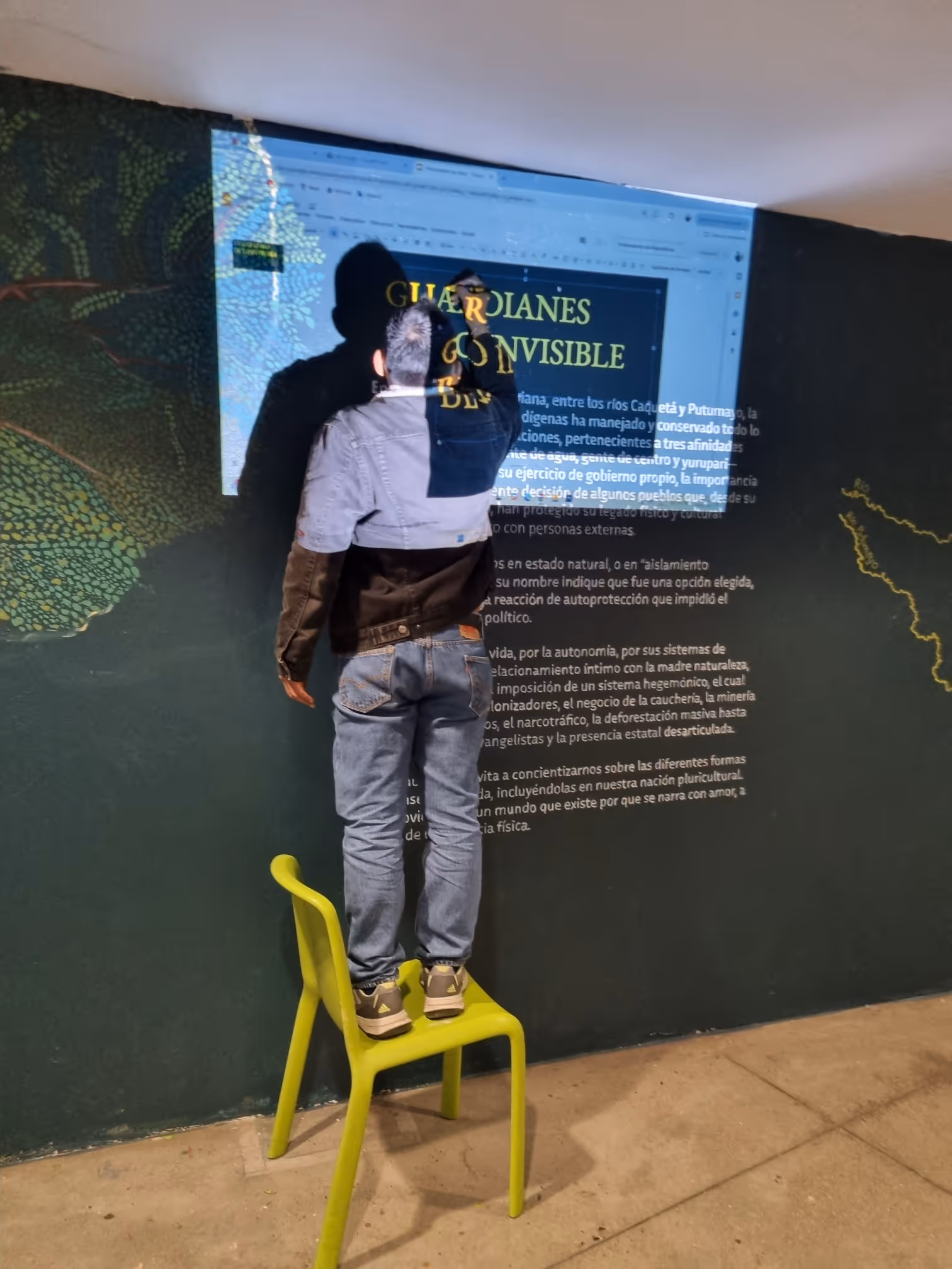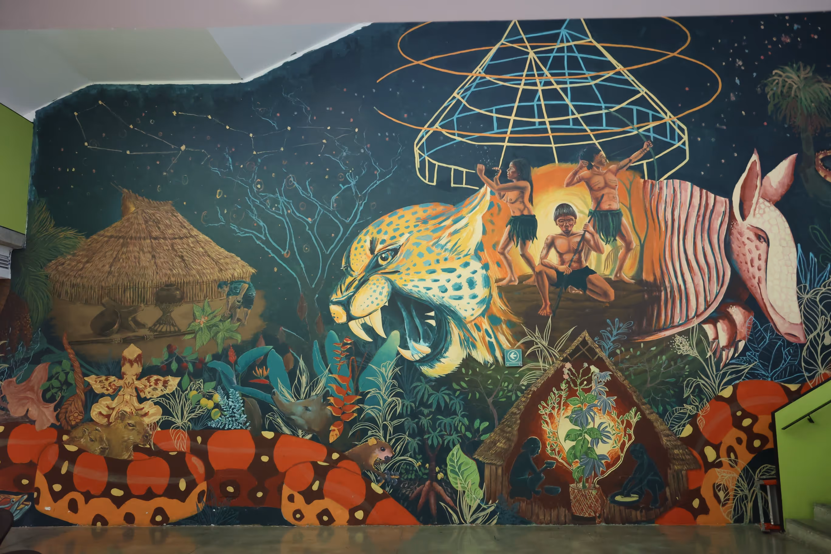 A partir de una investigación sobre el pensamiento de algunos pueblos de la Amazonía, que inicia en el periodo intersemestral del 2024, se decide coordinar la ejecución de un mural para crear conciencia sobre el trabajo que viene haciendo las Asociaciones de autoridades Tradicionales -AATI- que contribuyen al ejercicio de protección de los pueblos indígenas en aislamiento voluntario o pueblos indígenas en Estado Natural, en particular los que habitan en PNN Río Puré y también sobre los derechos de dichos pueblos.