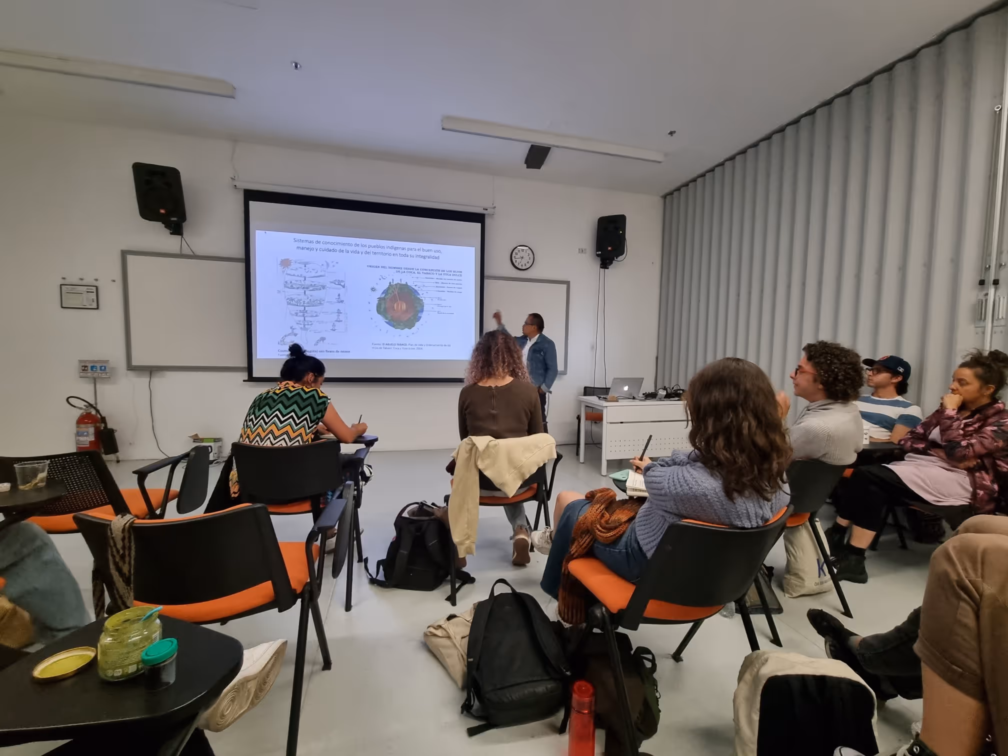 De regreso en Bogotá, el semillero retoma el mural para incorporar los aprendizajes del viaje. En el camino se fortalecen las dinámicas de equipo: escuchar, resolver conflictos y crear en colectivo. La inauguración oficial, al cierre del semestre, incluye proyecciones de mapping y otras tecnologías que dialogan con el mural.